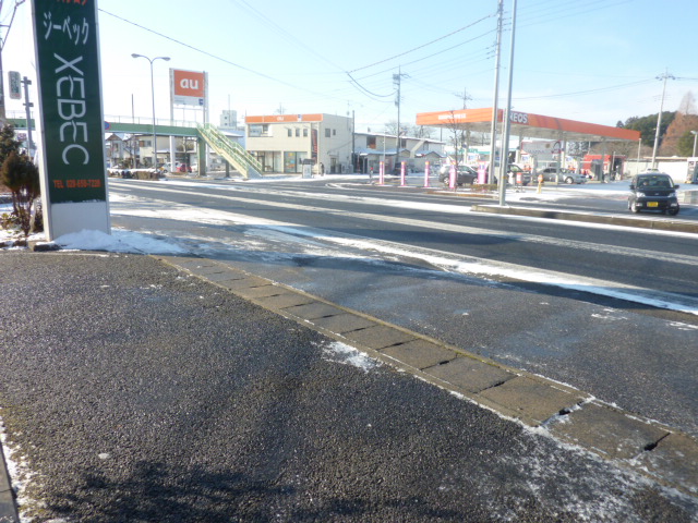 日陰や陸橋などまだ凍結部分が残っているところも