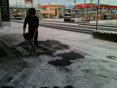 昨日はジーベックの前も雪が降り積もって