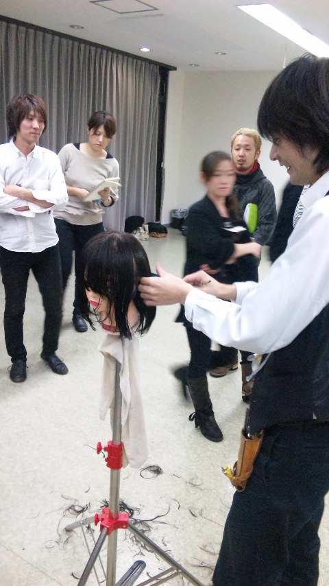 そんな吉田先生のご指導は、まずは、やはり基本からという事で、すき毛の作り方、逆毛の立て方、ツヤの出し方など教わり、最後はスタッフ各自での作品作り。