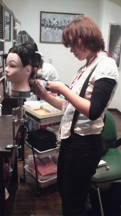 床屋さんだってやればできるんですよ(^^)という事を胸に!今日はアップ(日本髪)の練習です。