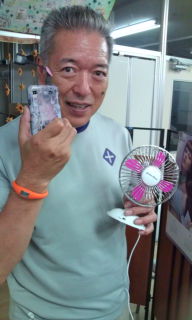 父の日のプレゼントに扇風機と扇子、そして、ご愛用のスマートフォンのオリジナルカバーをプレゼントしました。